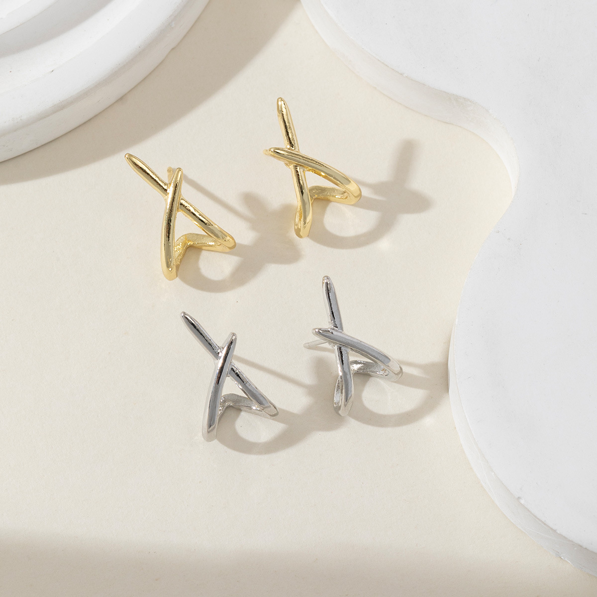 LATS Trendy Gold Color Cross Stud Earrings for Women Dainty Simple Minimalist Earring Fashion Jewelry Party Gifts Wholesale