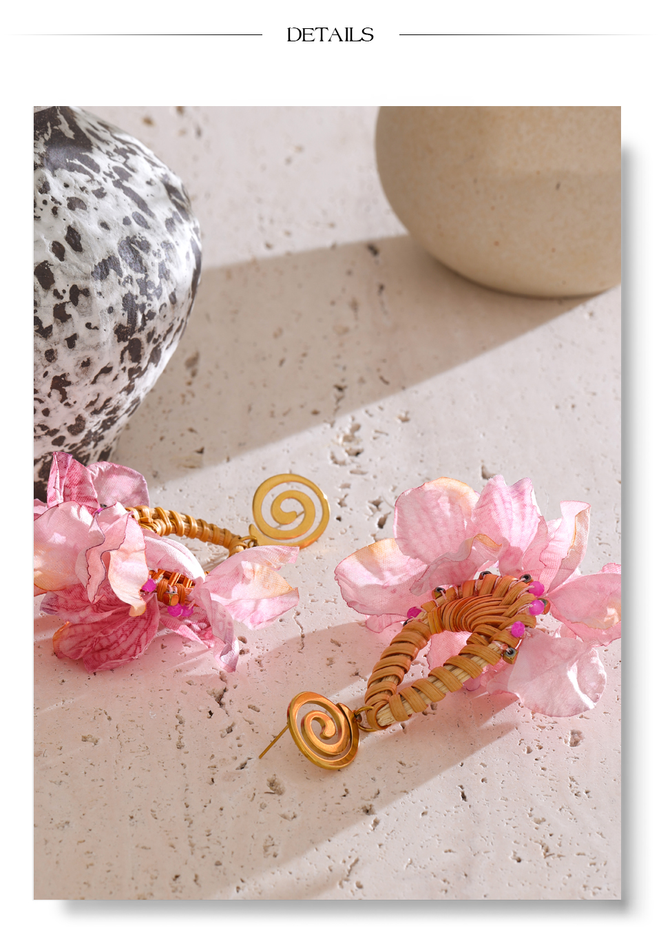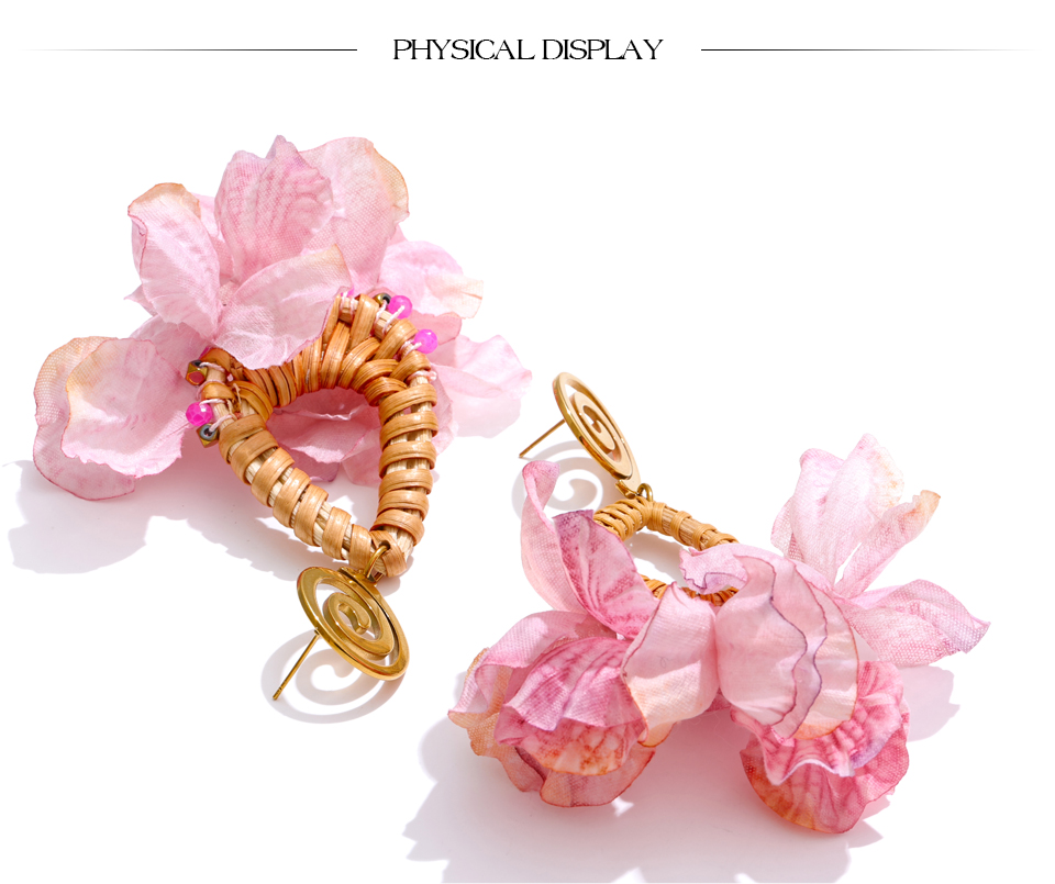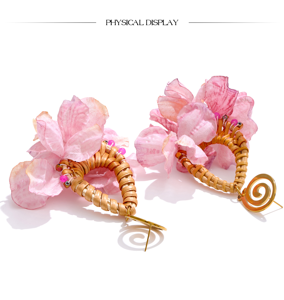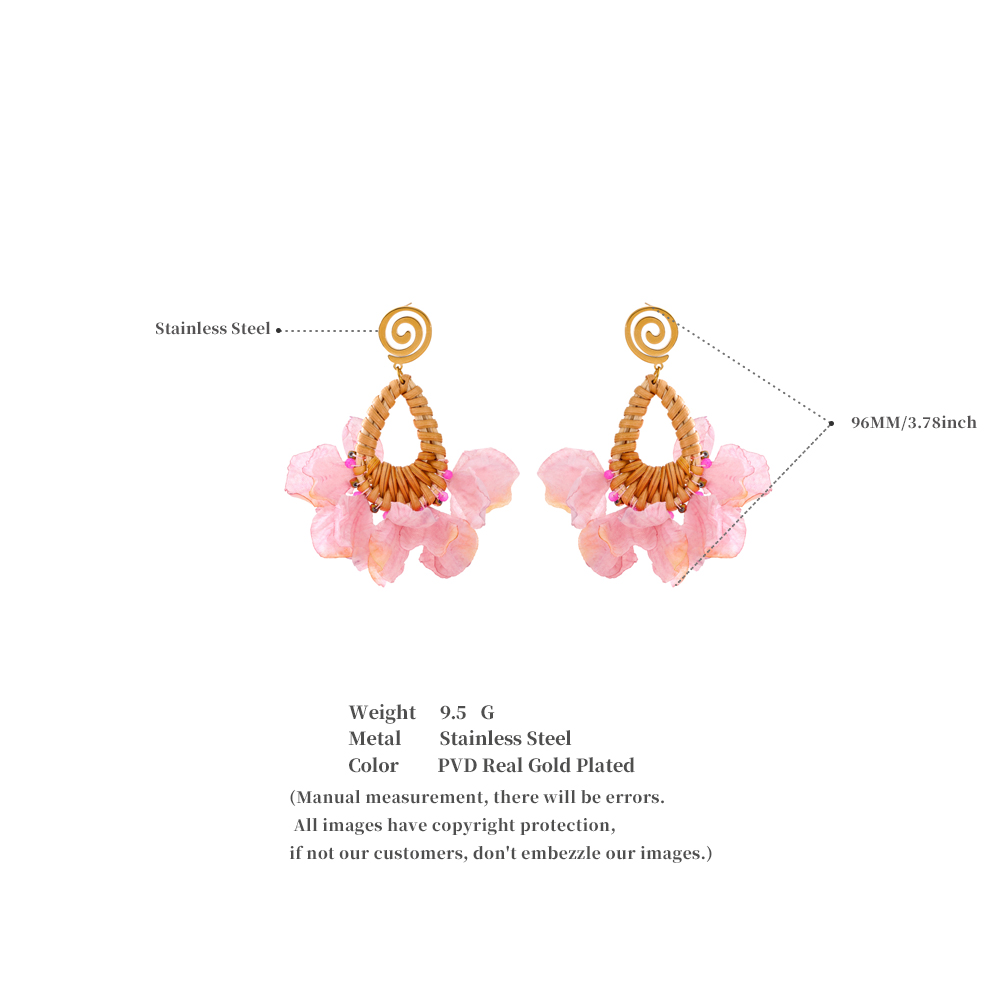 Spring Summer Romantic Bohemian Pink Flower Dangle Earrings Exclusive Fashion Stainless Steel Handmade Fairy Jewelry Gift