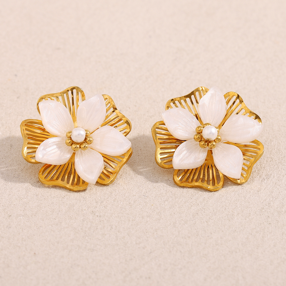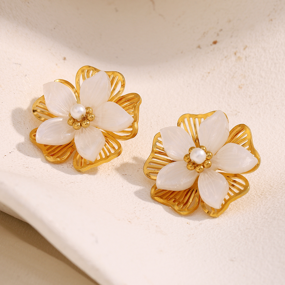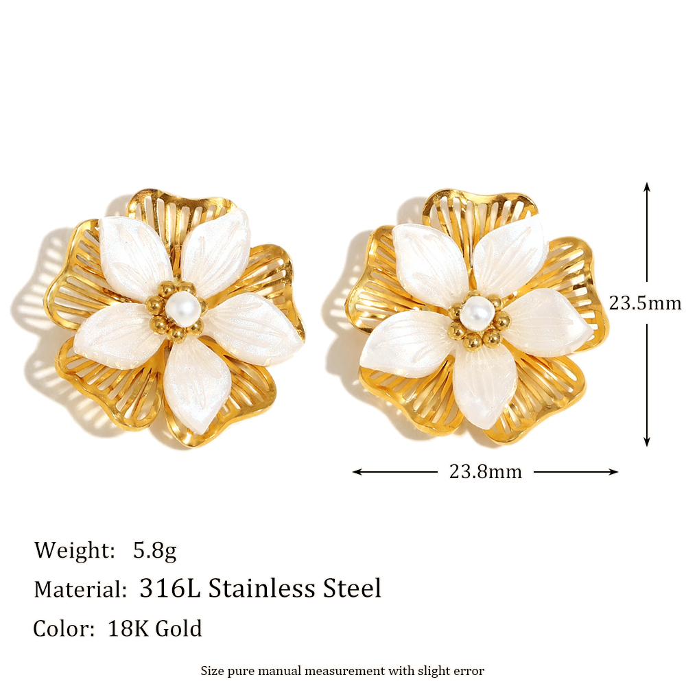 Stainless Steel Earring Plated 18k Gold Color Statement Jewelry Flower Waterproof Daily Earring for Women Premium Gift