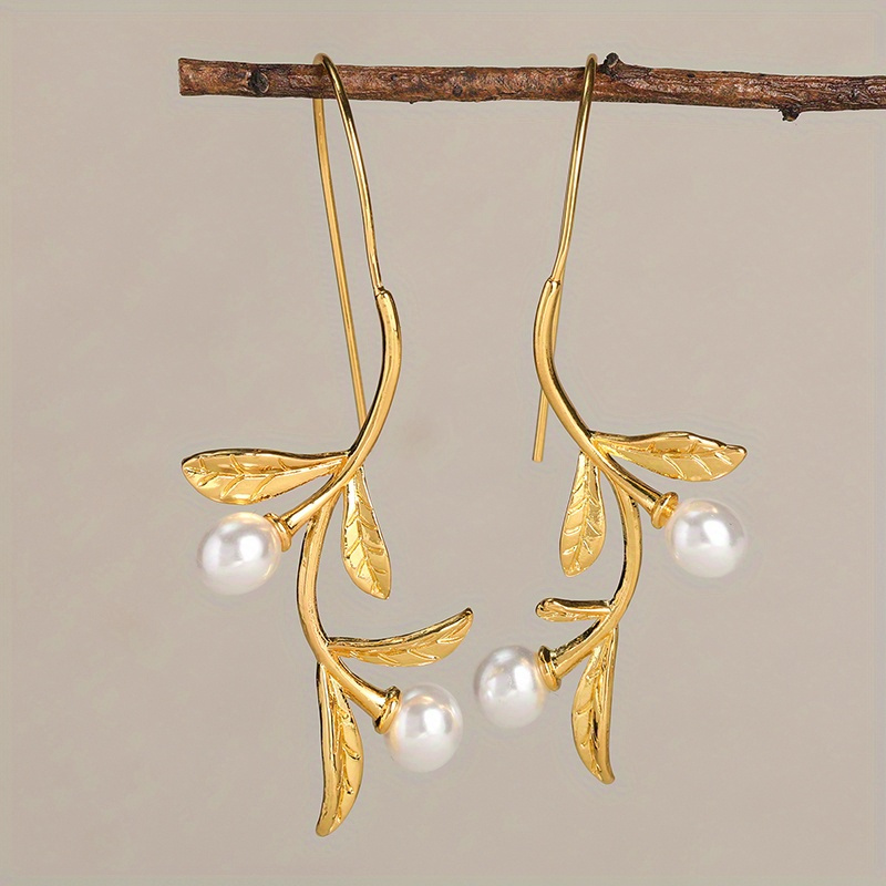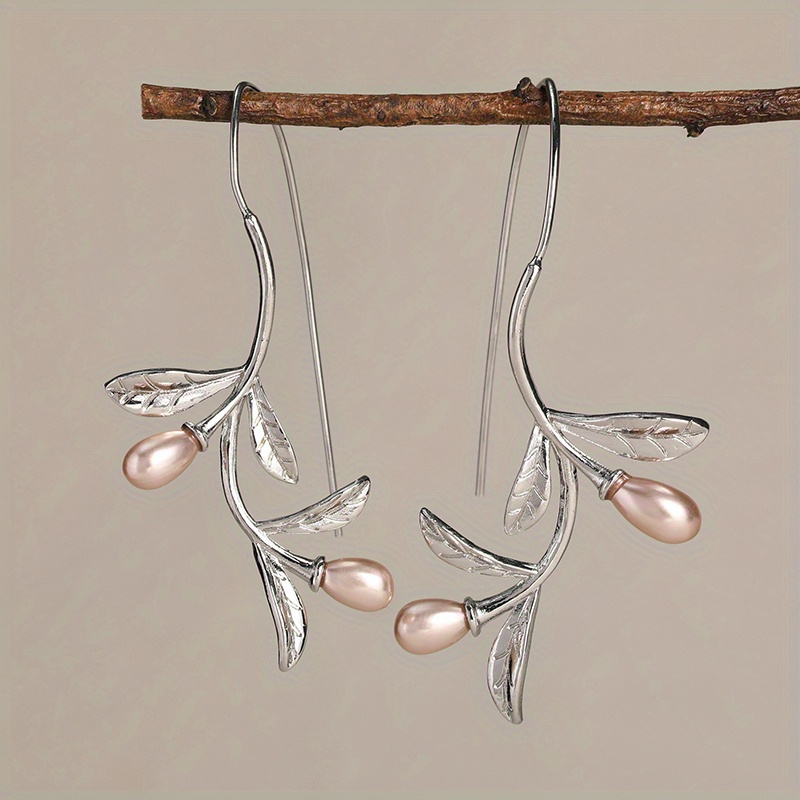 Charm Fashion Leaves Imitation Pearl Earrings Gold Silver Color Party Dangle Earrings for Women