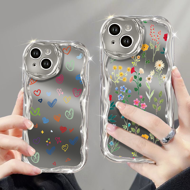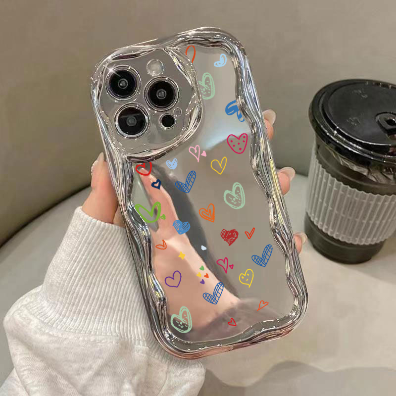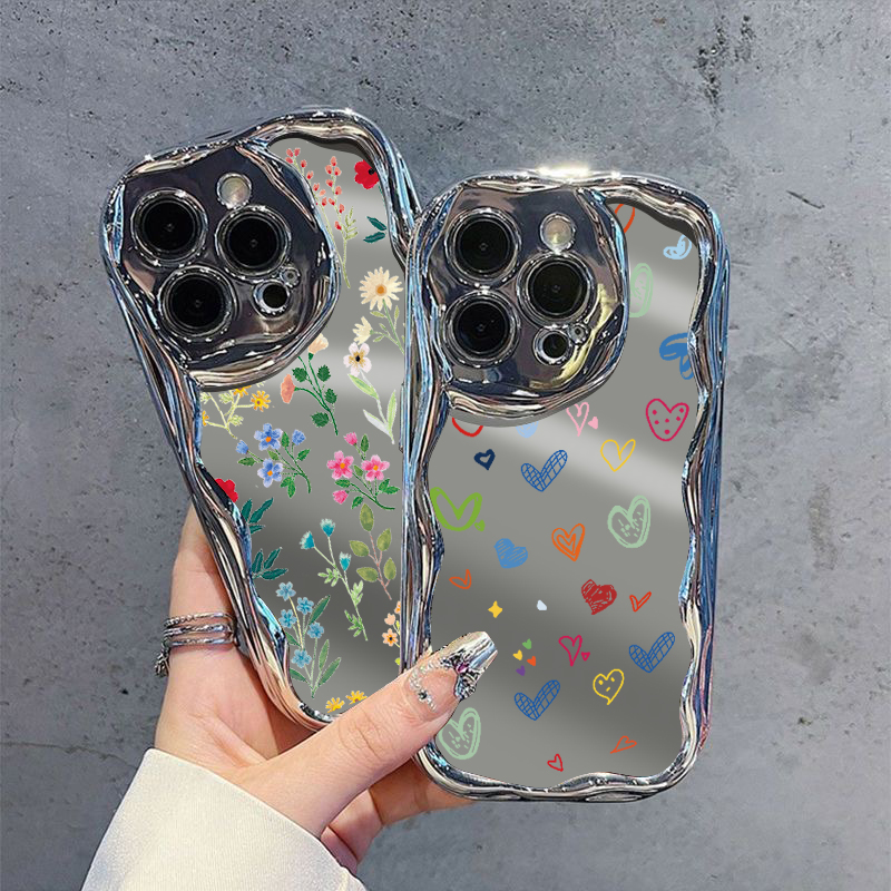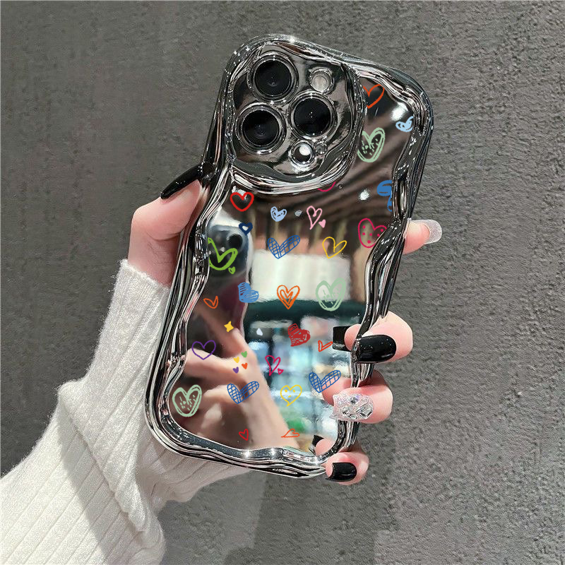 Luxury Plating Make Up Mirror Love Heart Phone Case For iPhone 16 15 14 13 Pro Max 14 15 Pro 11 12 Shockproof Soft TPU Cover