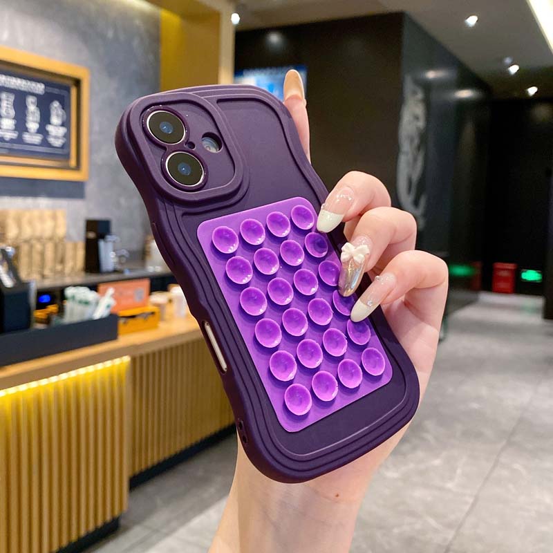 3D Multi Color Suction Cup Holder Phone Case for iPhone 11 Pro 12 13 Mini 14Pro 15 Plus 16 Pro Max Soft Silicon Back Cover