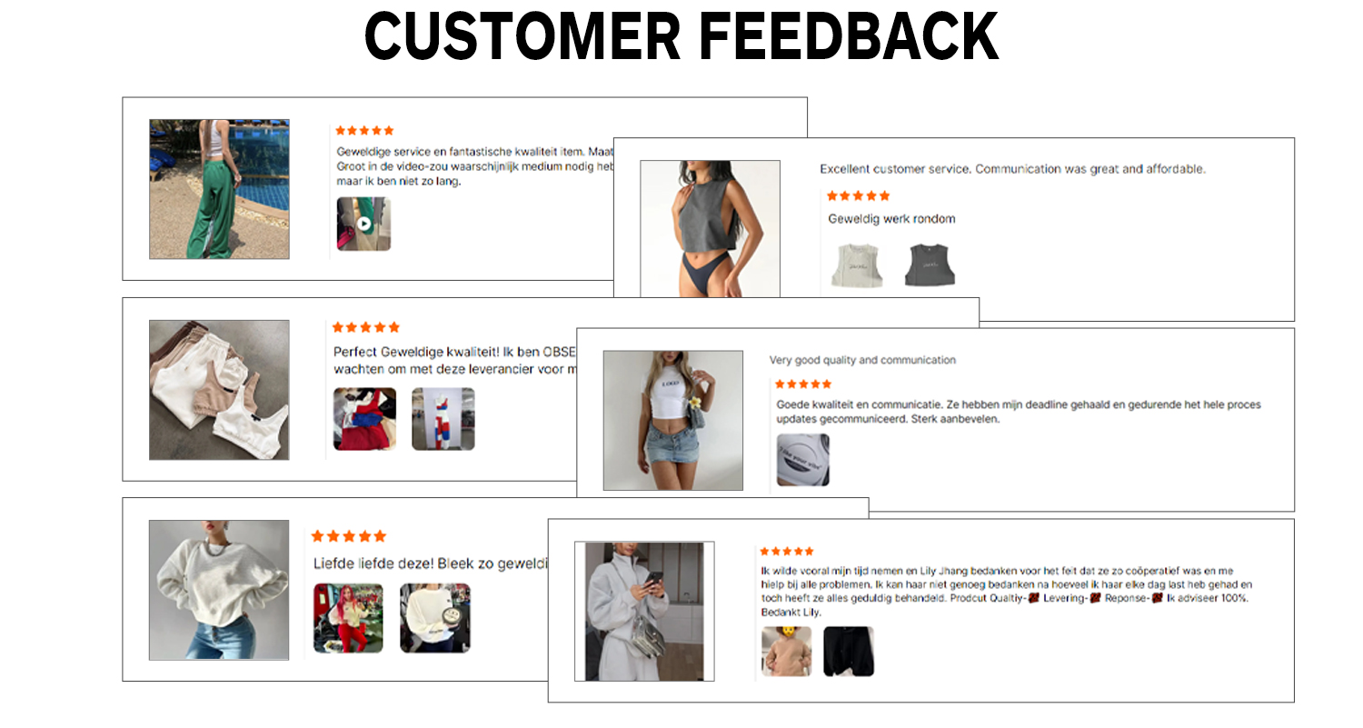 Customized hoodies, tracksuits, sweatshirts/pants, active wear, kids wear, T-shirts, shorts, dress and so on.