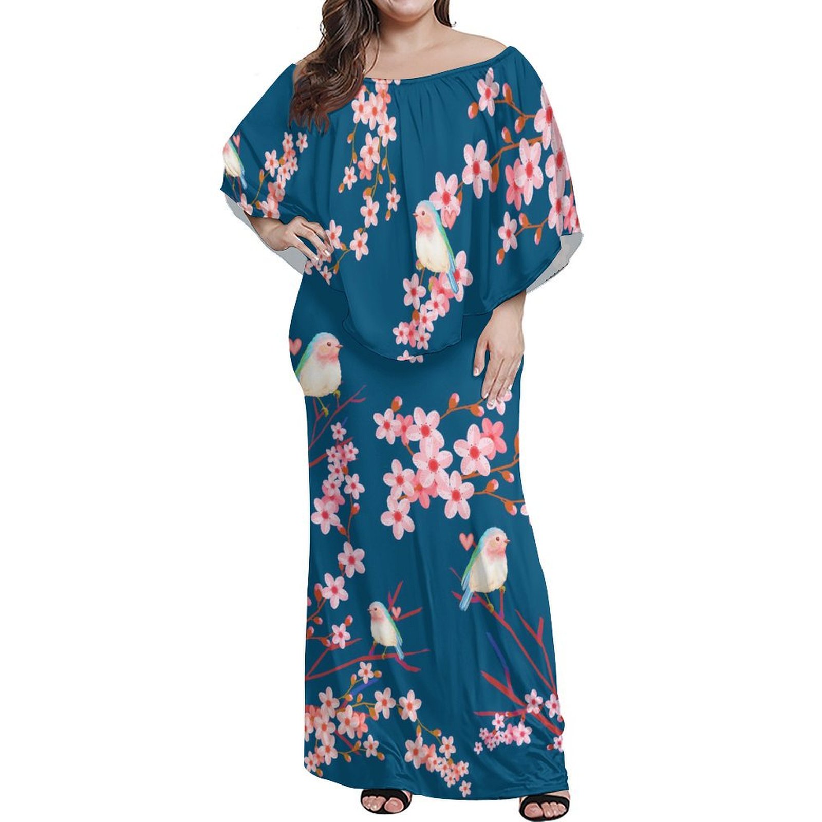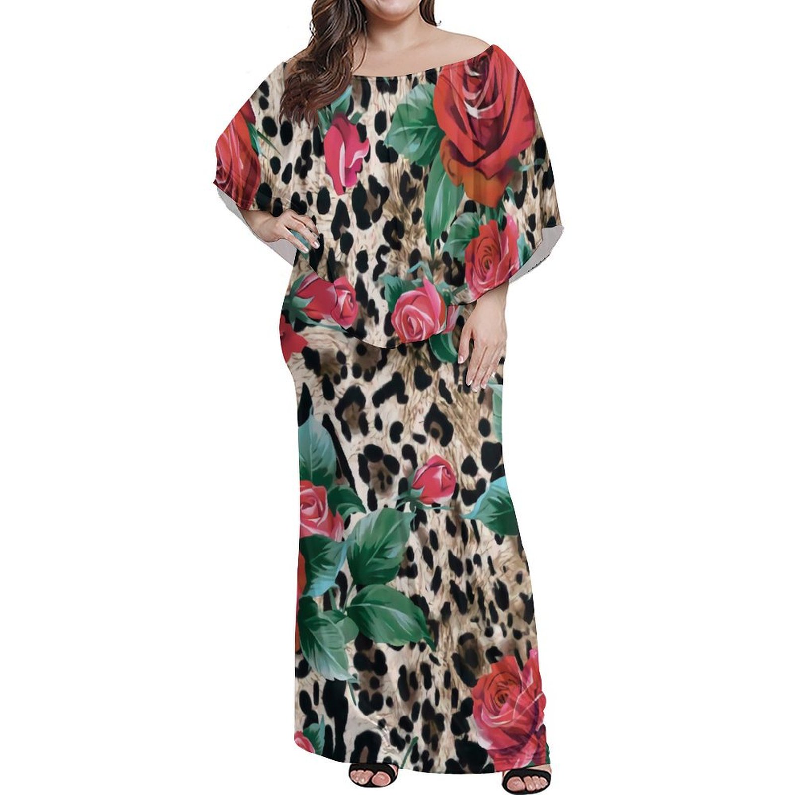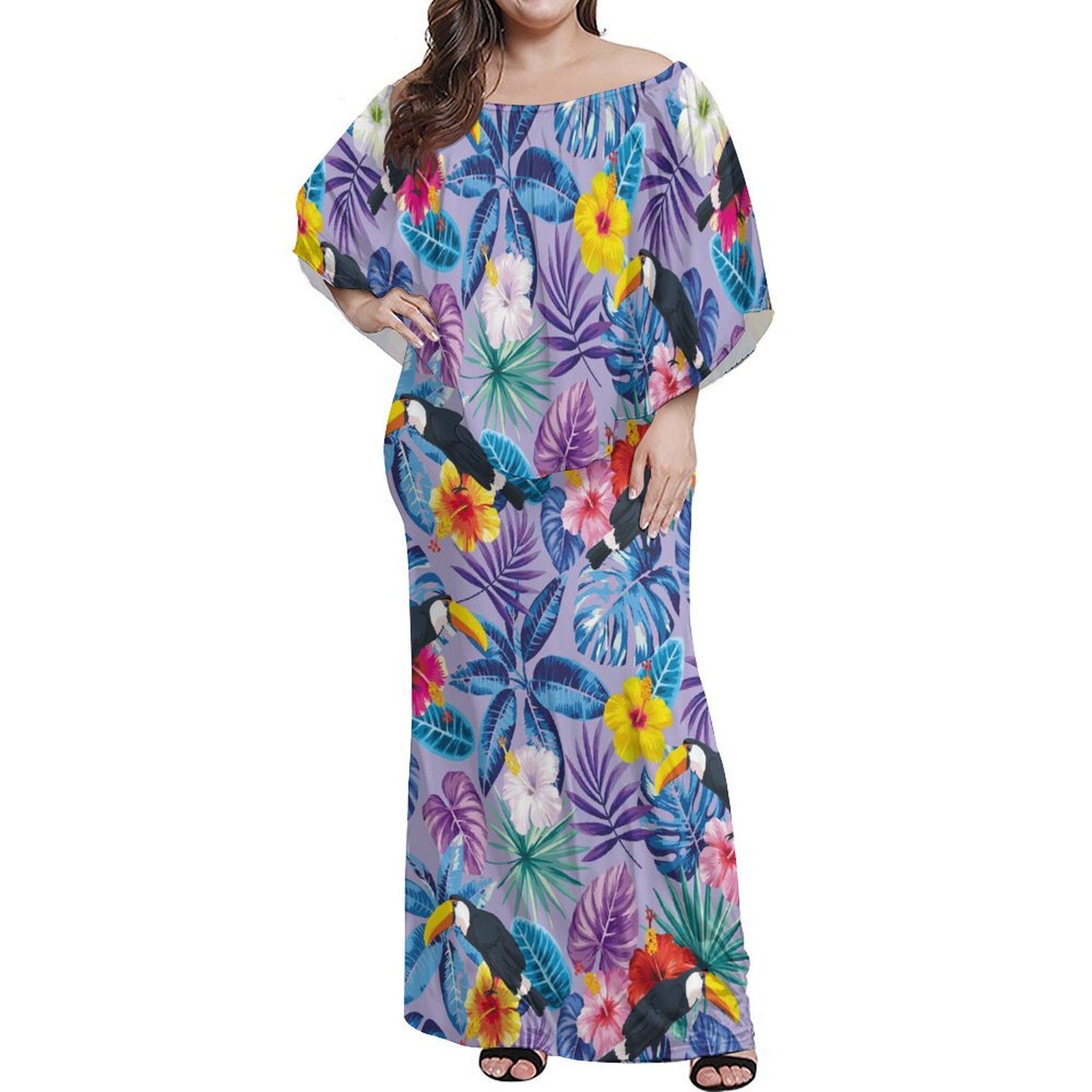 Print on Demand Custom Double Petal Sleeve Mermaid Dress Crew Neck Long Bodycon Fishtail Dress Polynesian Hawaiian Dresses