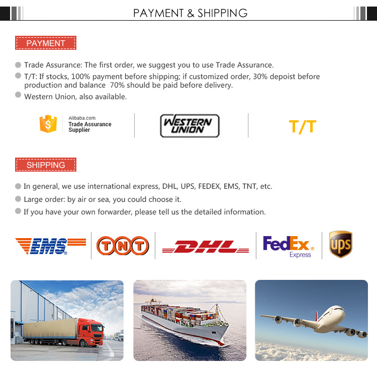 Trade Assurance/Bank Transfer/Paypal/Western Union/T/T, etc.