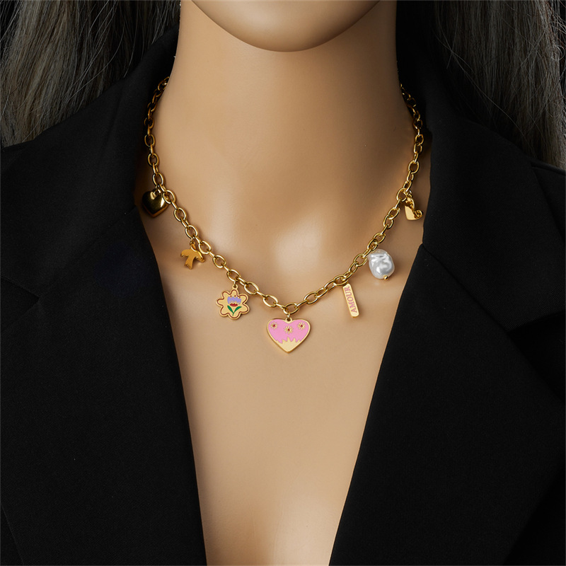 New Cute Non Tarnish Heart Charm Pendant Necklace 18k Gold Plated Stainless steel Multi Charm Necklace For Women