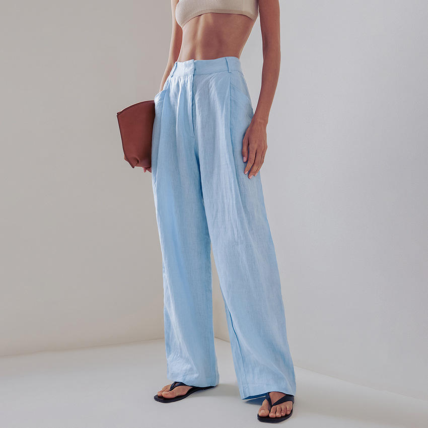 Custom Summer Women Patchwork Casual 100% Linen Pant