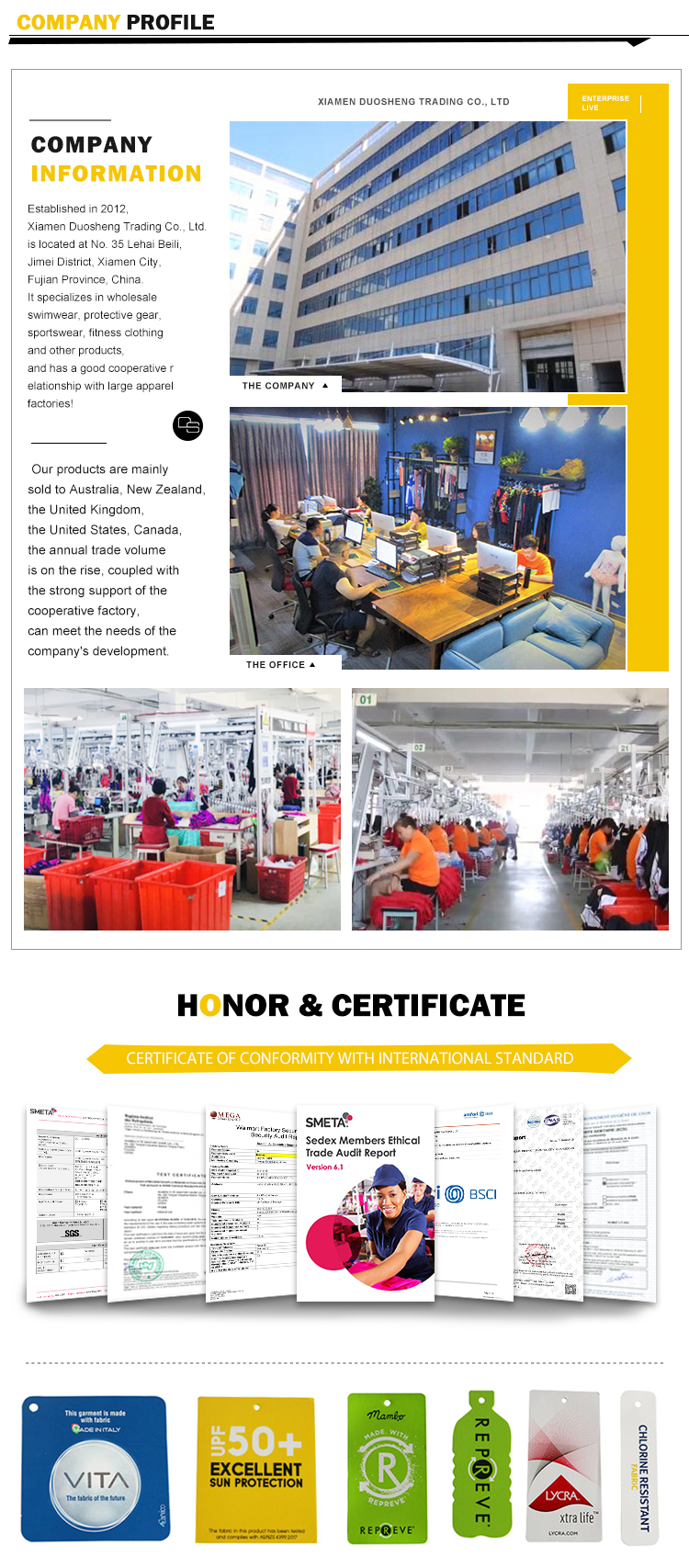 A: We are a professional manufacturer of sportwear and swimwear. With years of