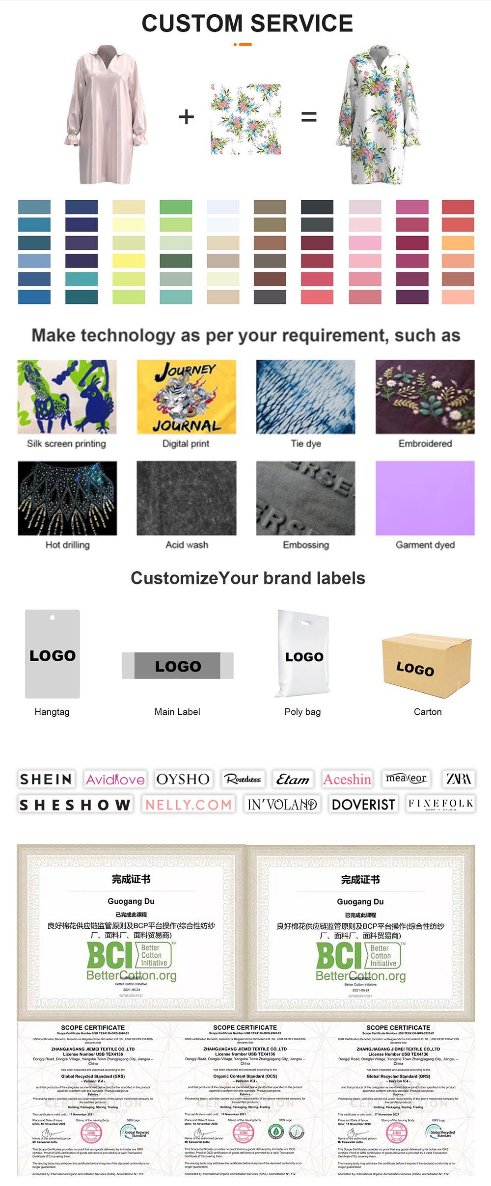 Q2: Which kind of products does your specialize in? A2: We do sleepwear, sportwear, loungewear, lingerie, maternity clothes and casual dress. According to the requirements of customers, we can also customize other styles.