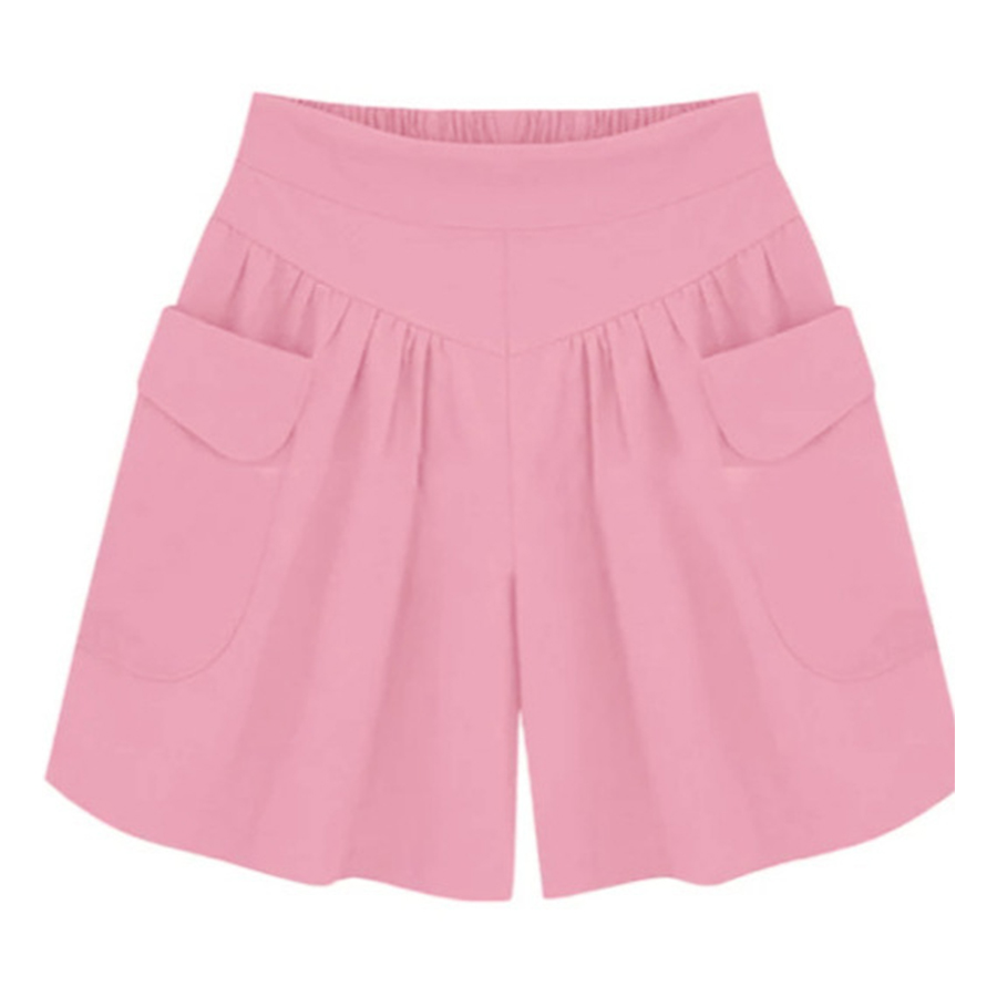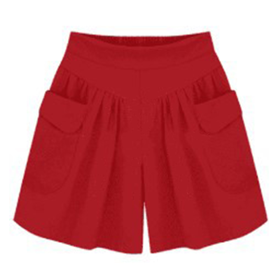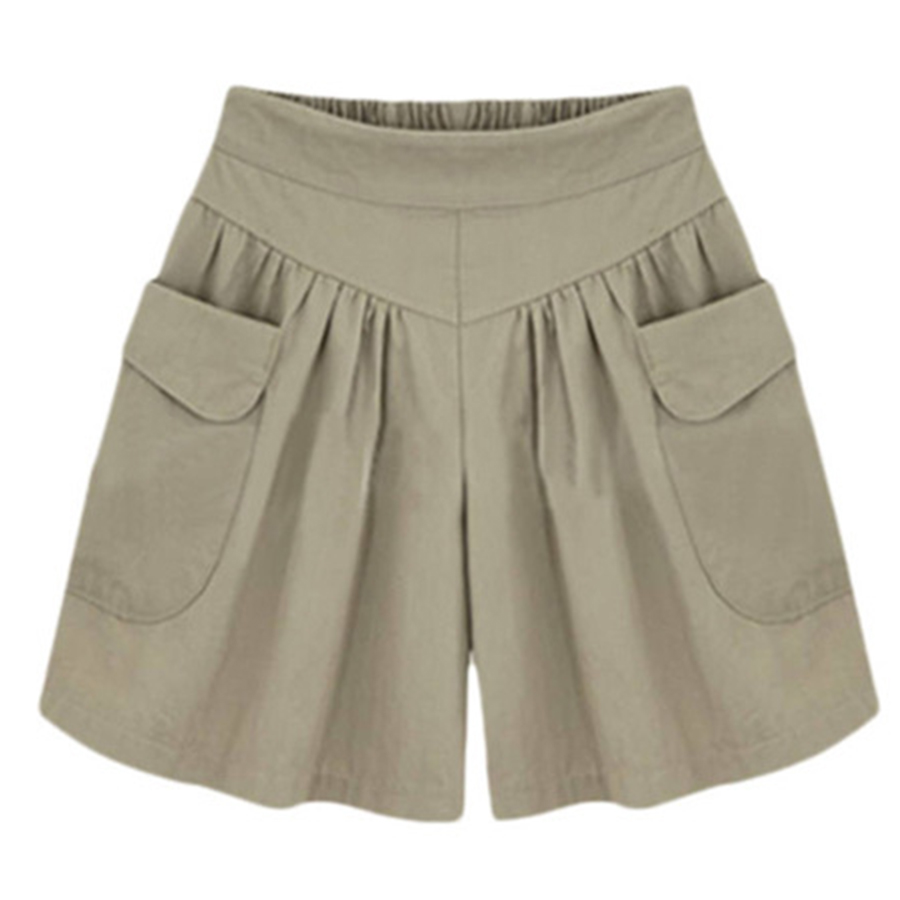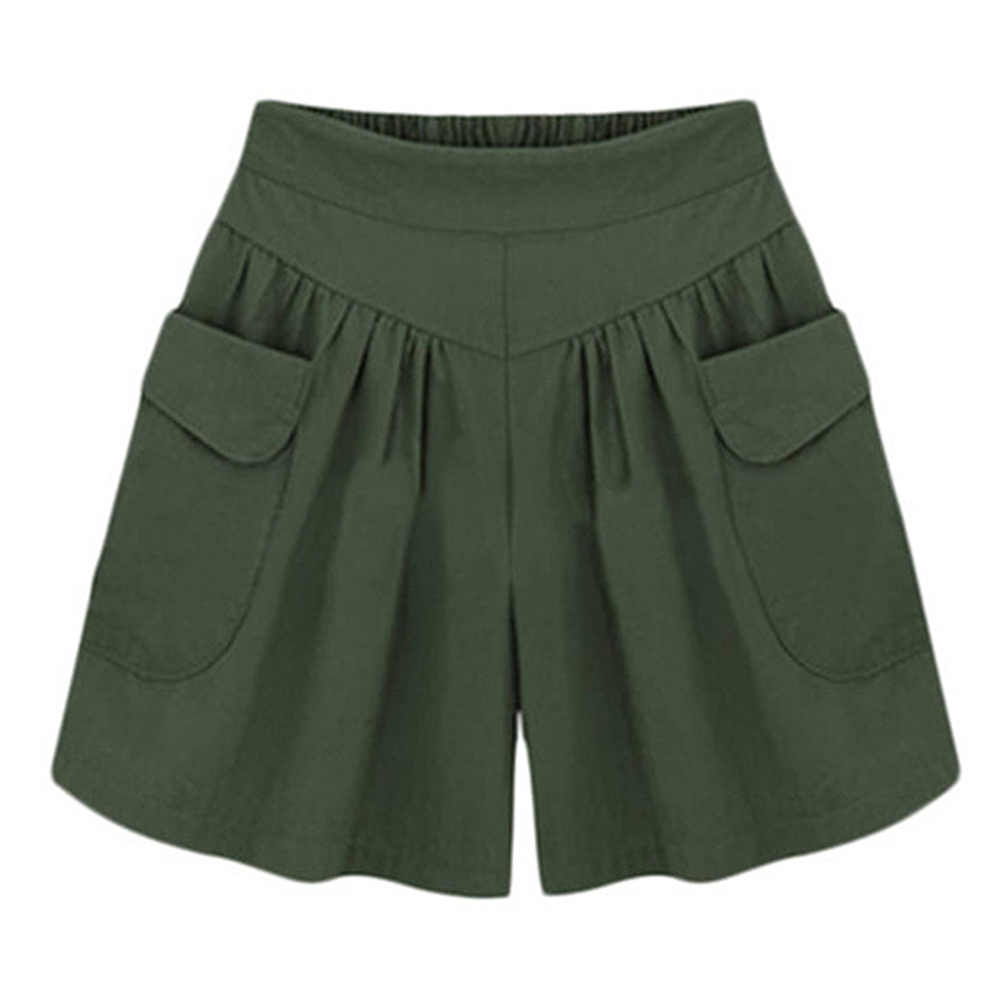 New Fashion Women Summer Short Pants Drawstring Elastic Waist Cotton and Linen Shorts Solid Color Pockets Casual Shorts