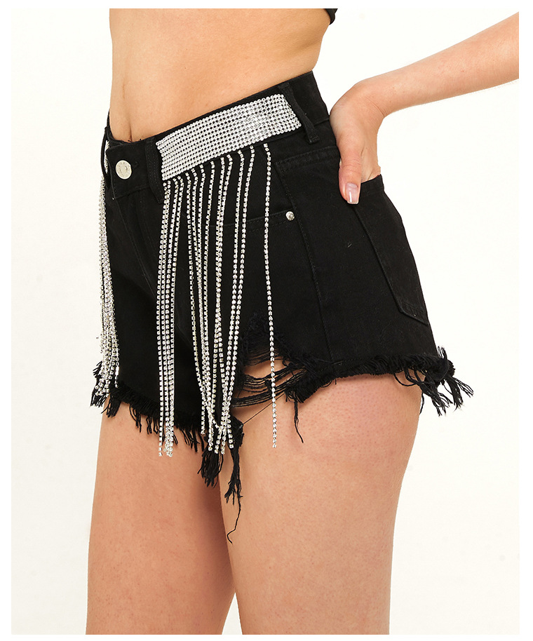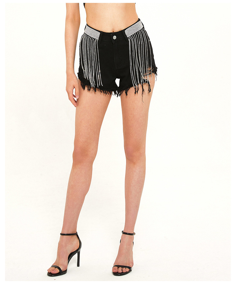 Rhinestone Chain Tassel Highwaist Jeans Women Shorts Gorgeous Women's Dresses Denim Shorts Jeans