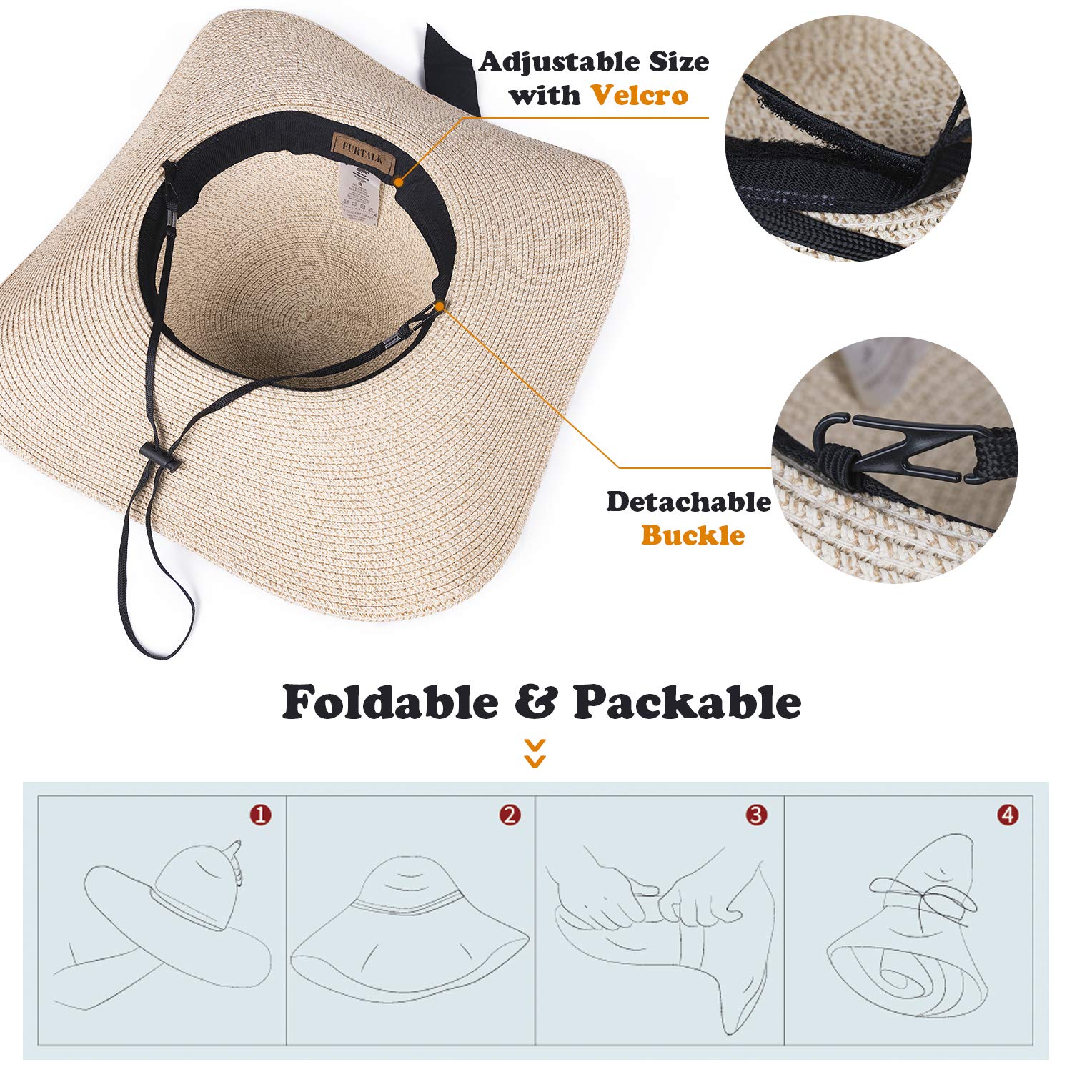 Foldable and Packable/UPF 50+/Premium Paper Straw/Wide Brim