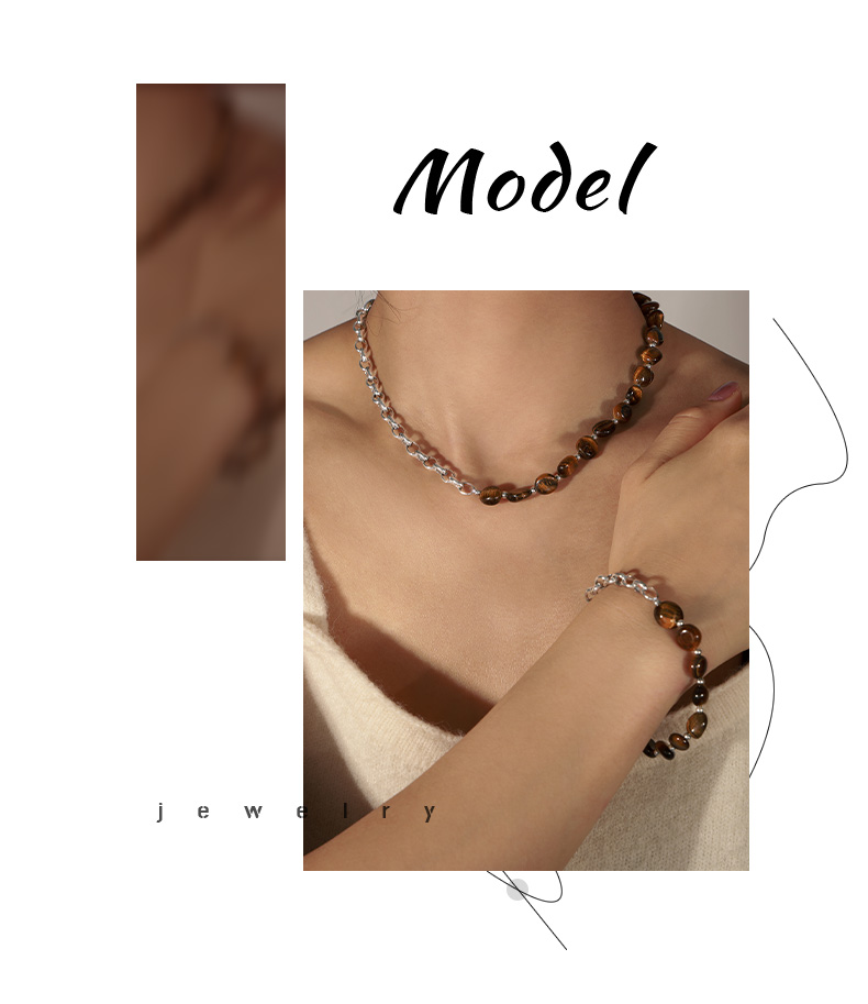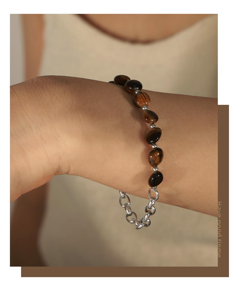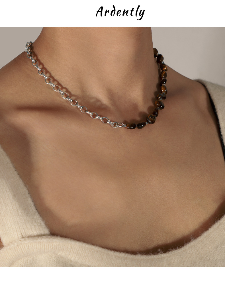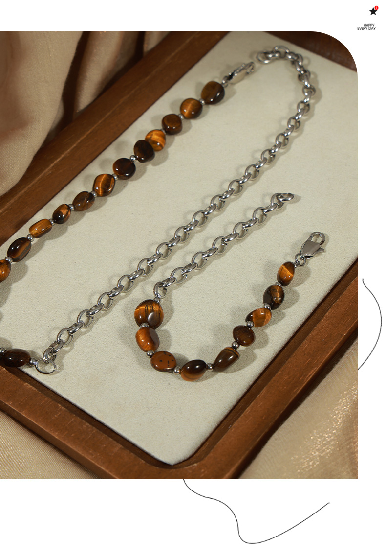 Europe and the United States new retro fashion personality design sense natural tiger eye stone handmade beaded necklace bracelet