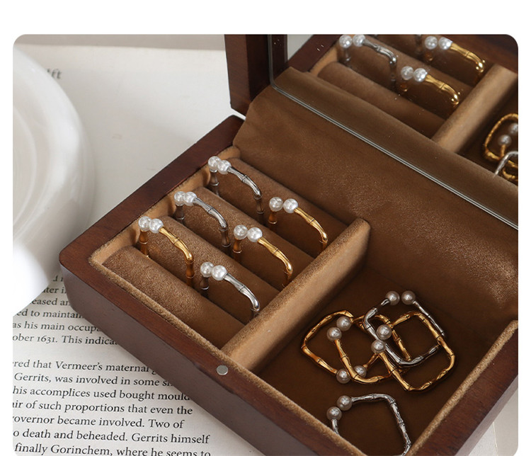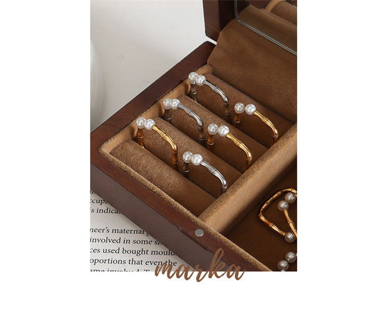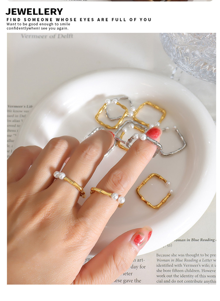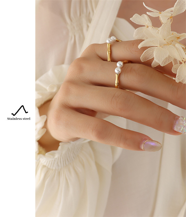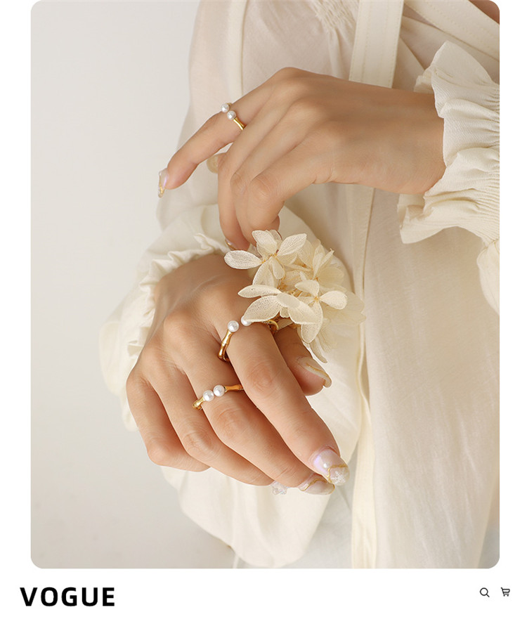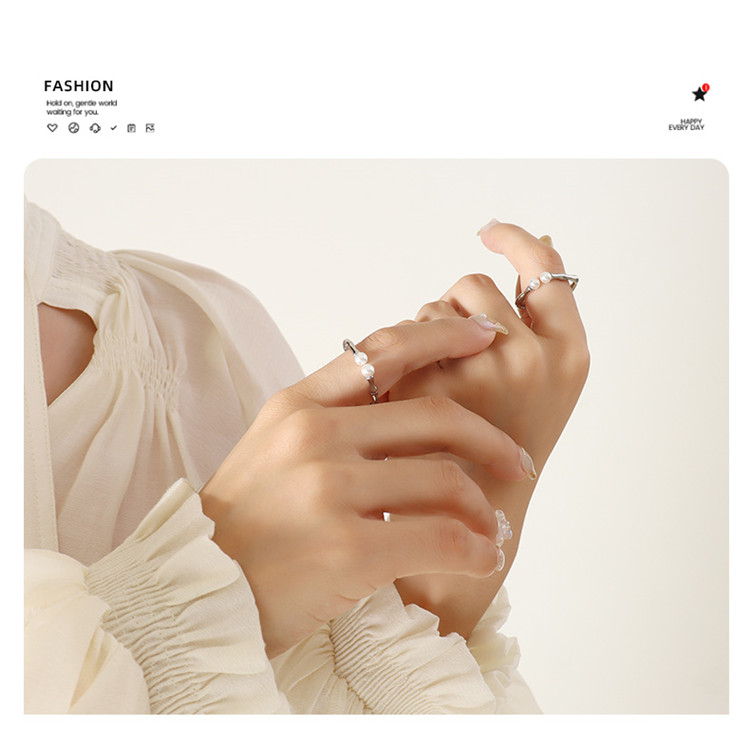 Popular in Hot Selling Zipper Finger Chain Geometric Pearl Ladies Trendy Stainless Steel Ring