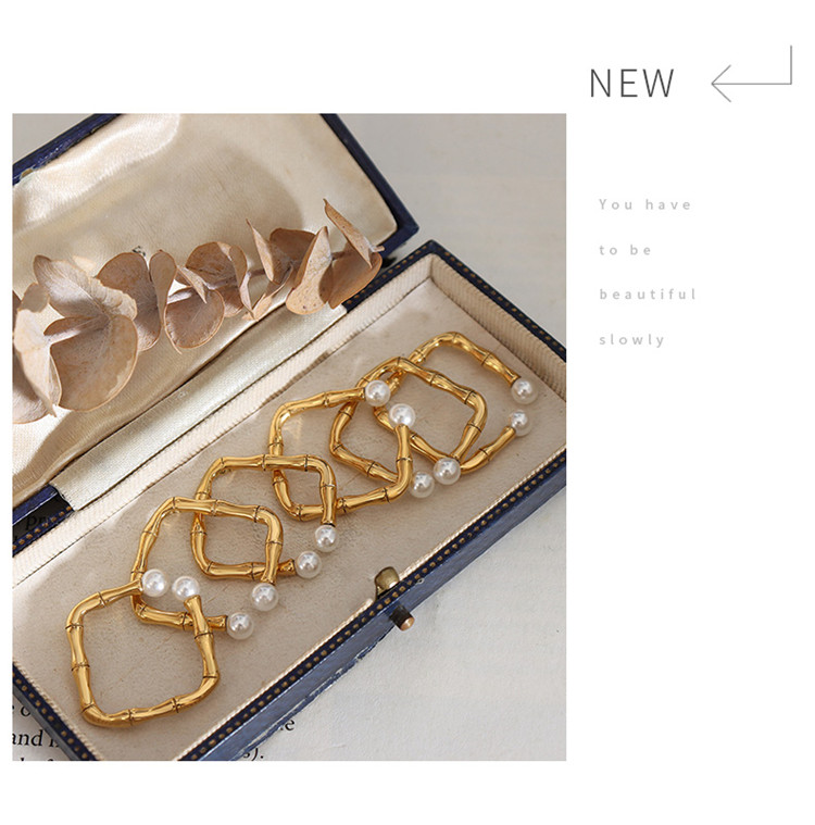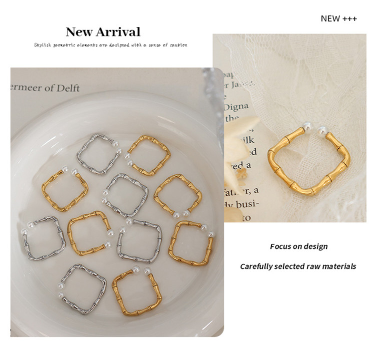 Hot Selling Fashion Elegant French Design 18K Gold Plated Dainty Bamboo Joint Square Women Open Rings