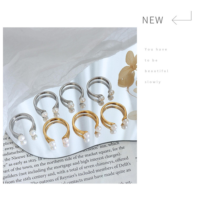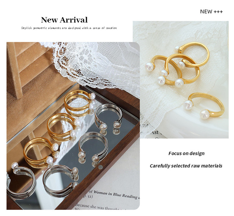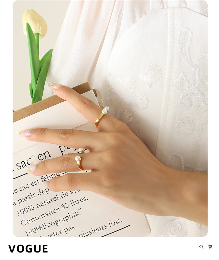 Popular in Hot Selling Zipper Finger Chain Geometric Pearl Ladies Trendy Stainless Steel Ring