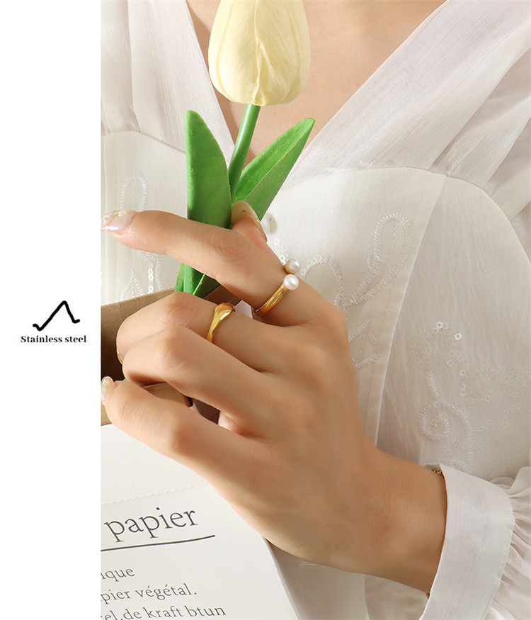 Pretty Design 18K Gold Plated Stainless Steel Rings Jewelry Women