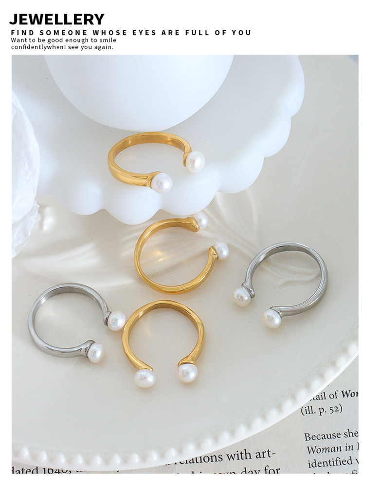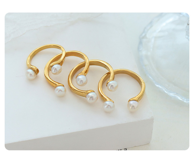 Hot Selling Fashion New Trend Baroque Freshwater Pearls U Shape Adjustment 18K Gold Plated Ring for Women