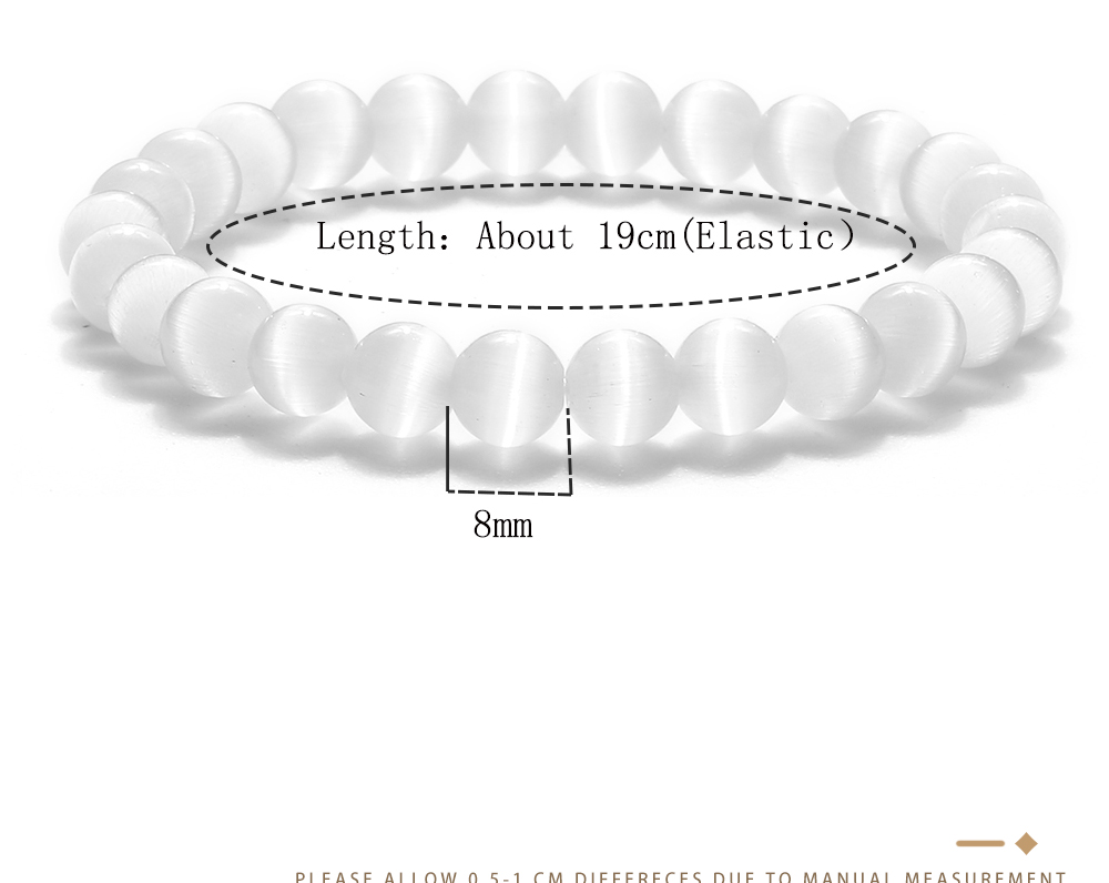4) Bracelet is a stretch rope strand bracelet and fit most size wrists, good matching for men and women. All bracelets are measured by hand, it had a margin of error of plus or minus 1cm. Hope you can understand.