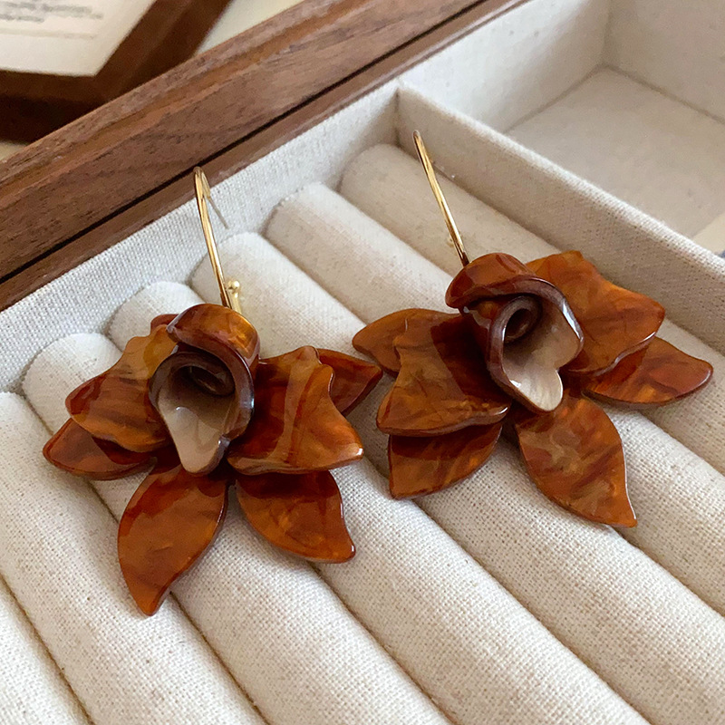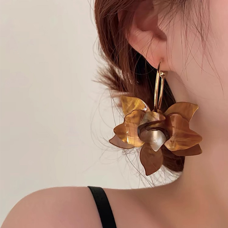 2025 New Trendy White Resin Flower Hoop Earrings For Women Fashion Metal C Shape Statement Earings Jewelry Accessories