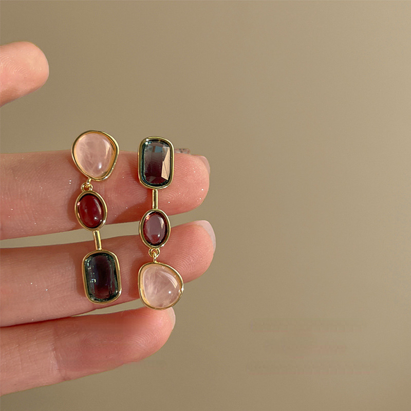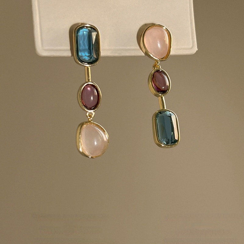 Asymmetric Colorful Resin Earrings for Women Retro Contrast Geometric Dangle Earrings Korean Jewelry High Quality Wholesale