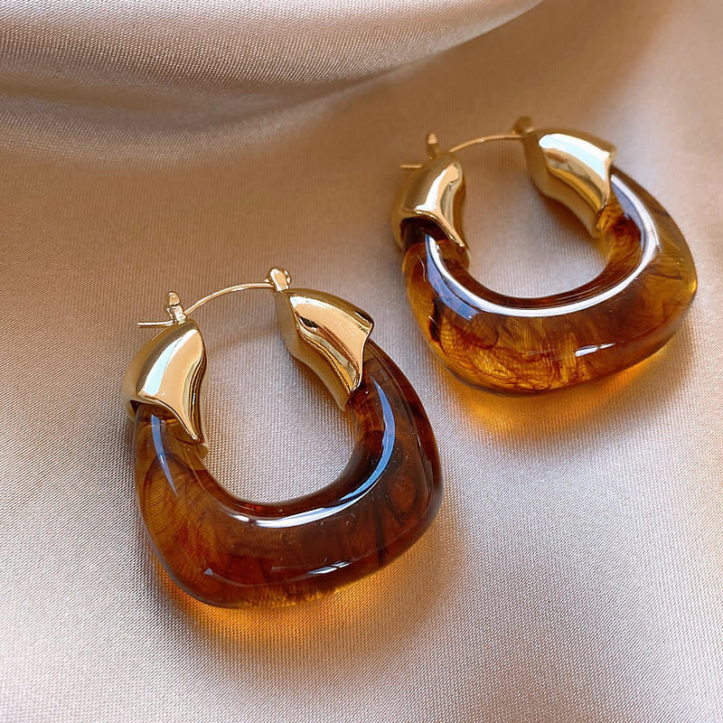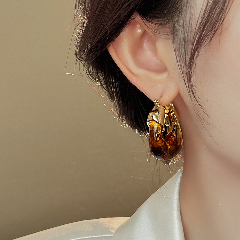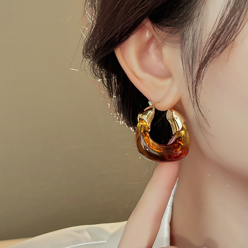 European And American Retro Brown Resin Letter U-shaped Geometric Hoop Earrings For Women Fashion Simple Metal Jewelry Gifts