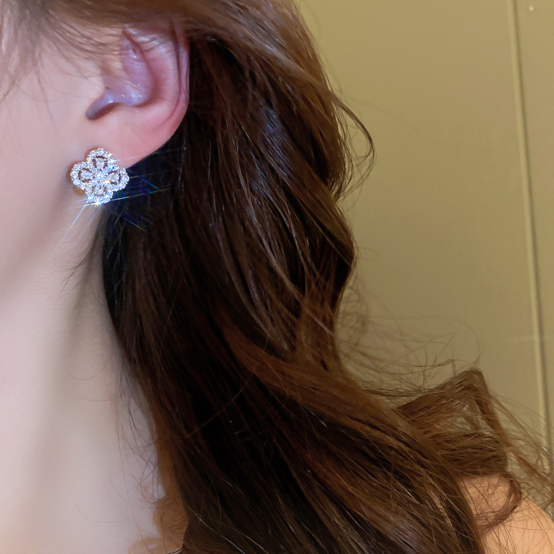 New S925 Sterling Silver Heart Simple Fashion Zircon Flower Stud Earrings Women Exquisite Student Girlfriend Fine Jewelry