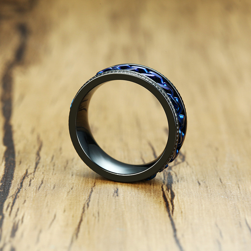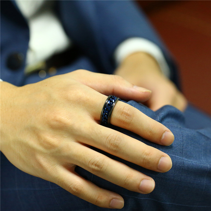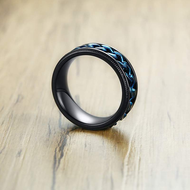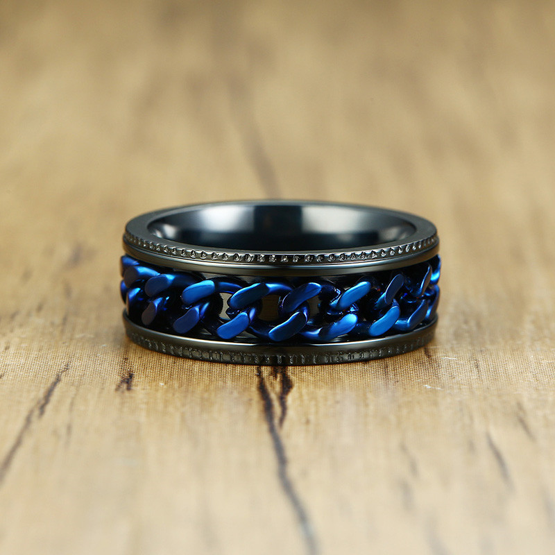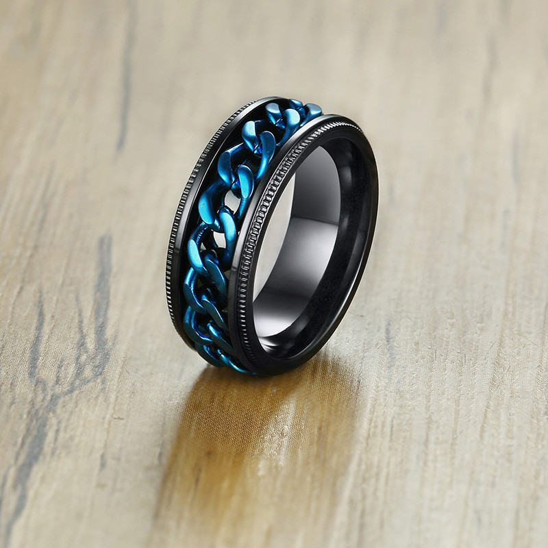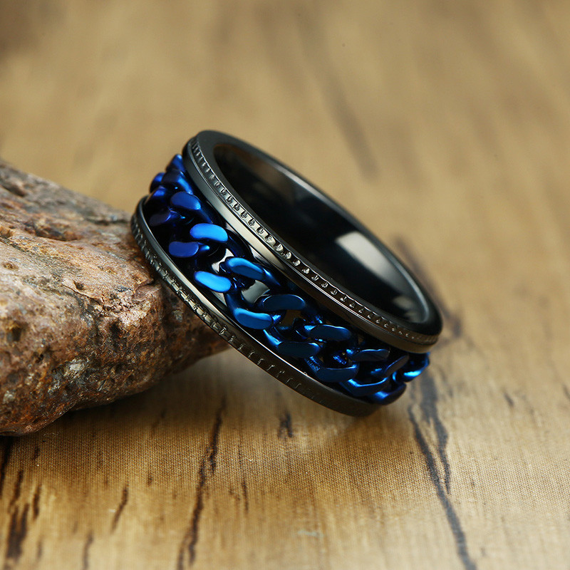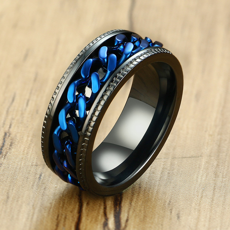 ZORCVENS 2024 New Fashion Punk Stainless Steel Chain Spinner Ring For Men Blue Black Punk Rings Accessories Jewelry Gift