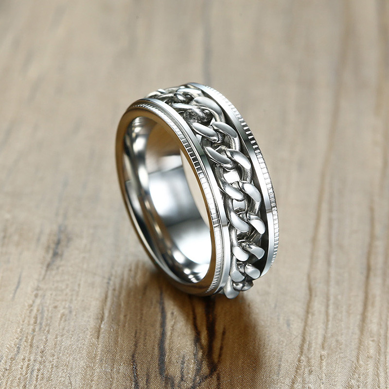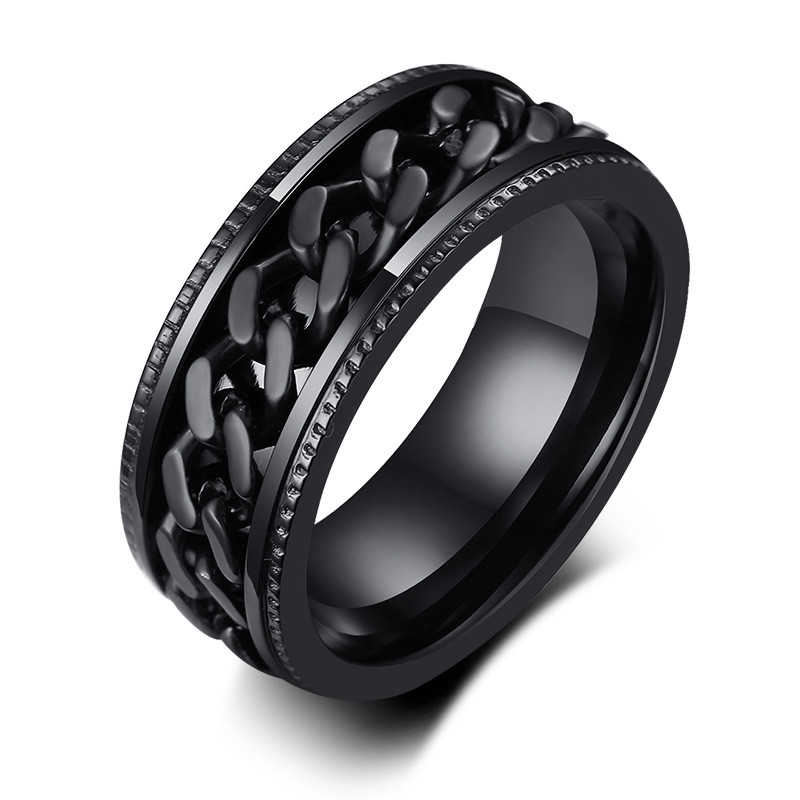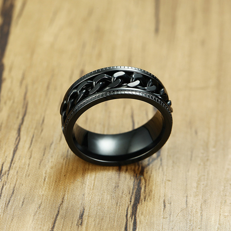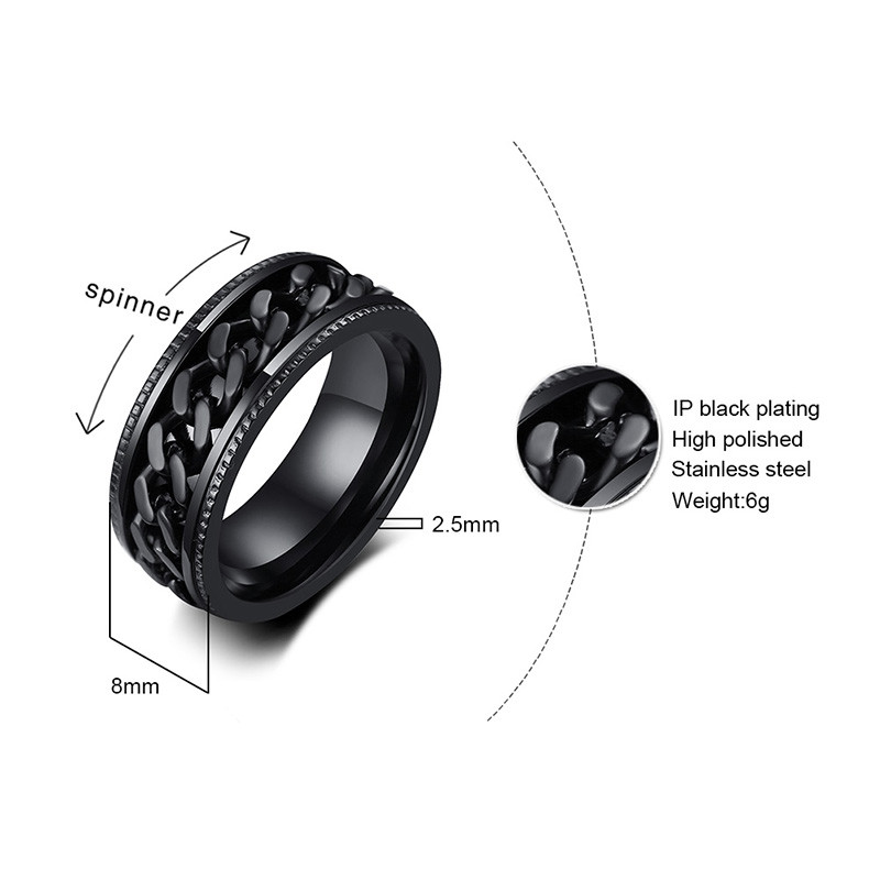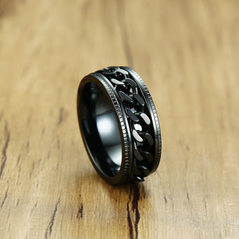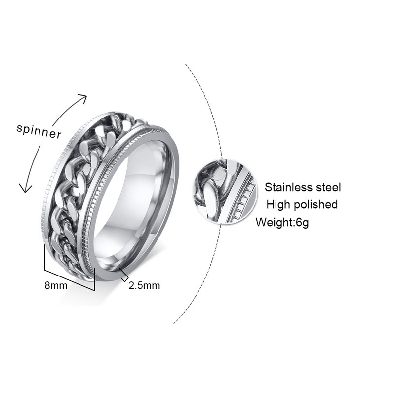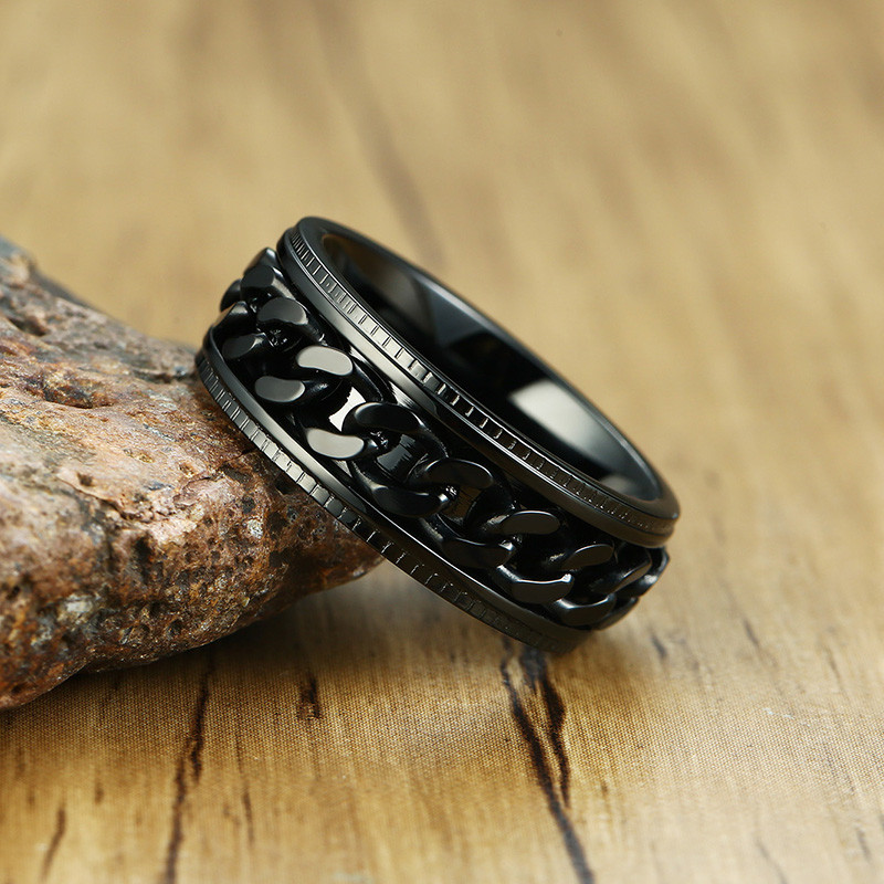 ZORCVENS 2024 New Fashion Punk Stainless Steel Chain Spinner Ring For Men Blue Black Punk Rings Accessories Jewelry Gift