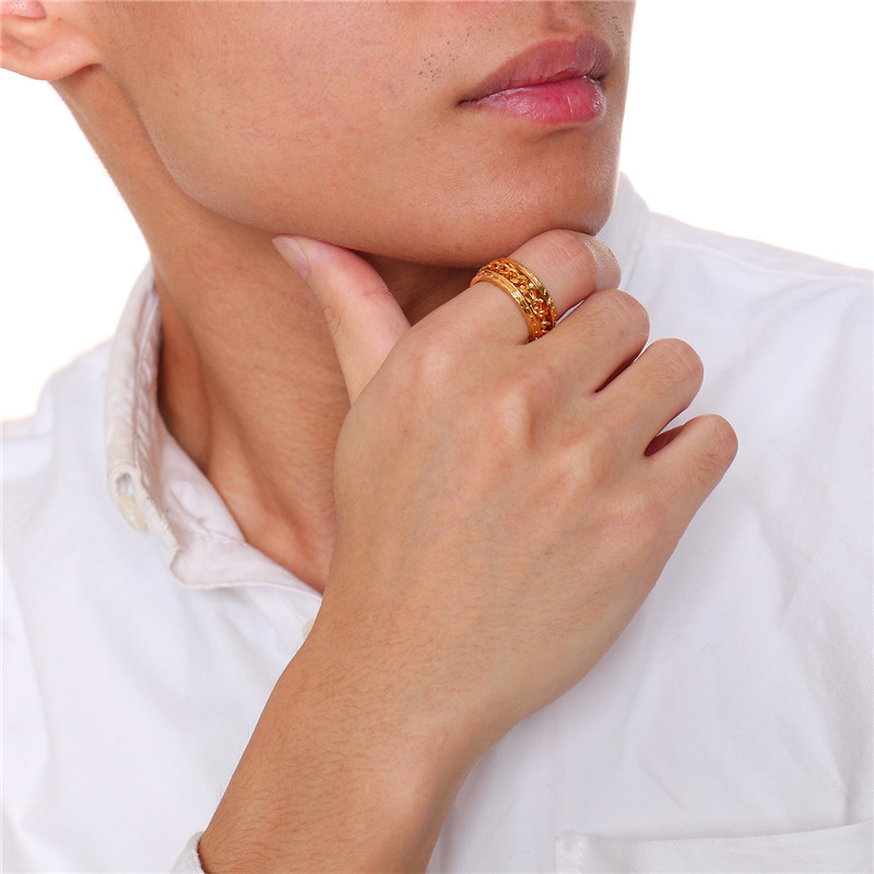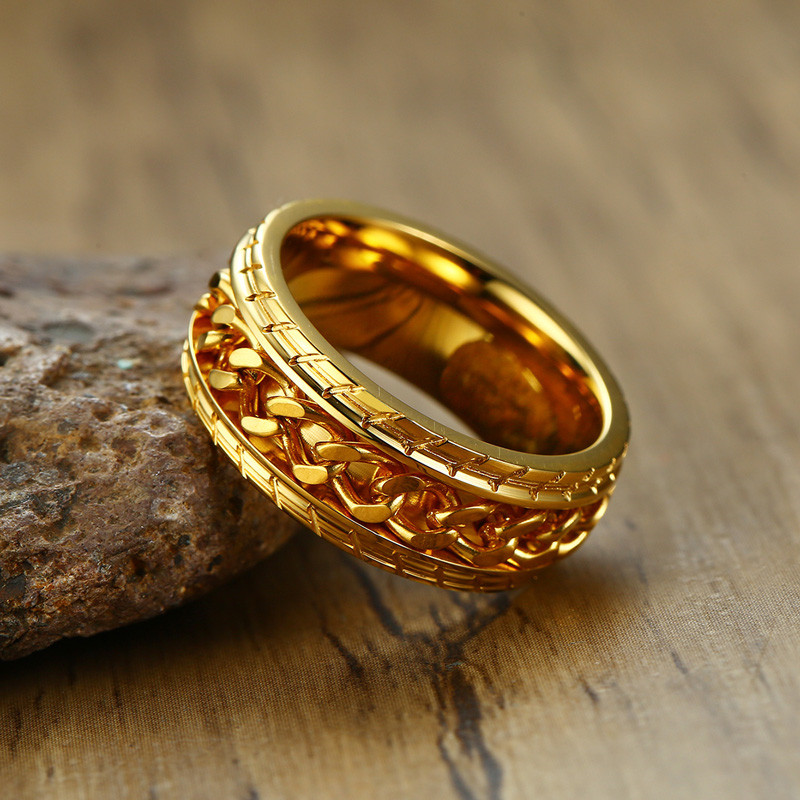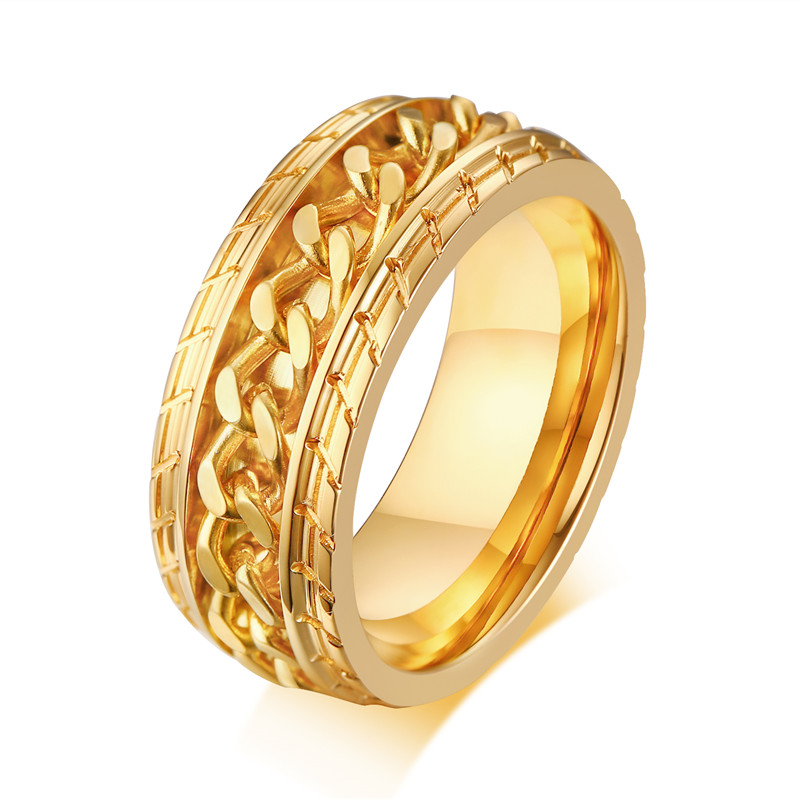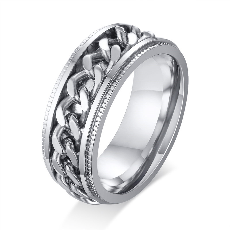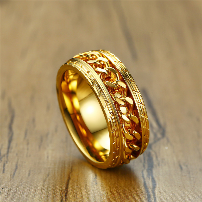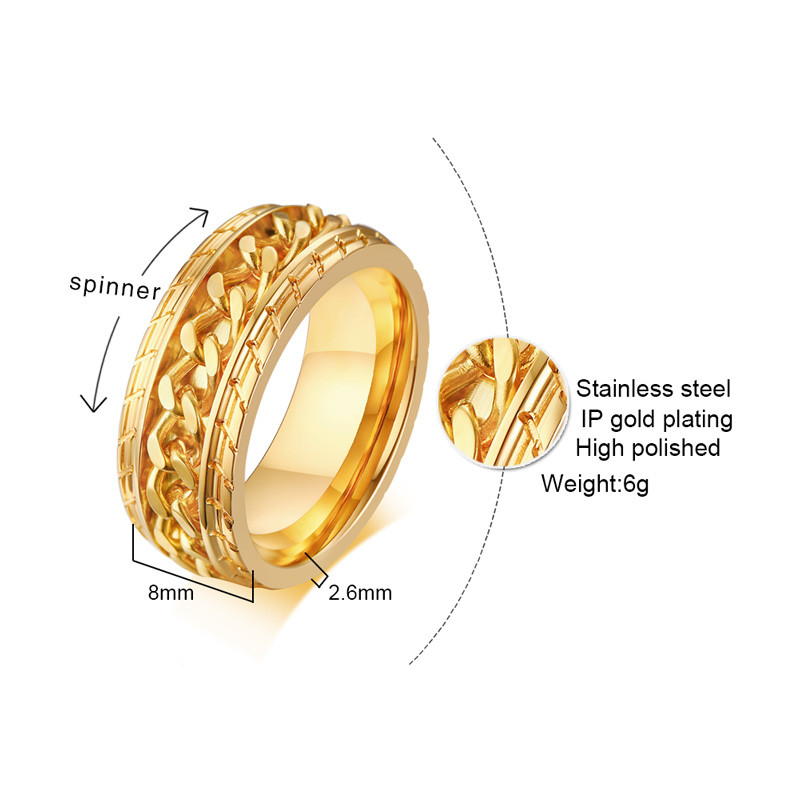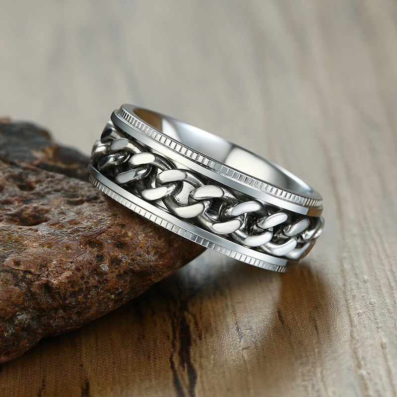 ZORCVENS 2024 New Fashion Punk Stainless Steel Chain Spinner Ring For Men Blue Black Punk Rings Accessories Jewelry Gift