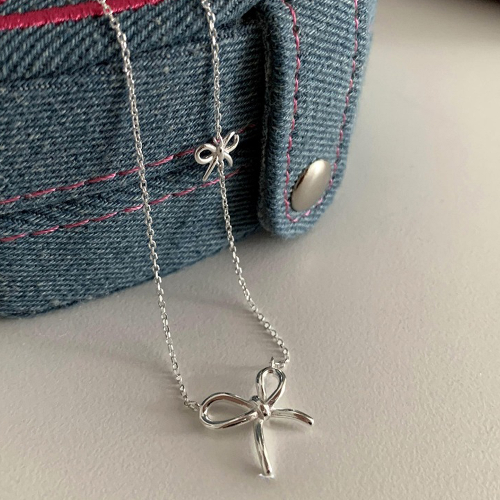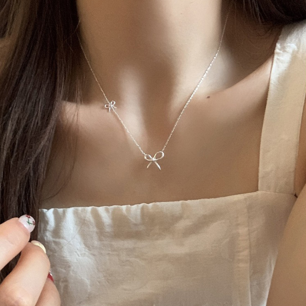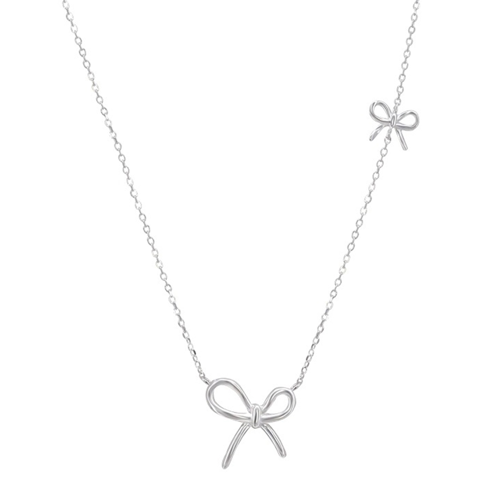 Sterling Silver Chain Necklaces Simple Bowknot Pendant Necklace