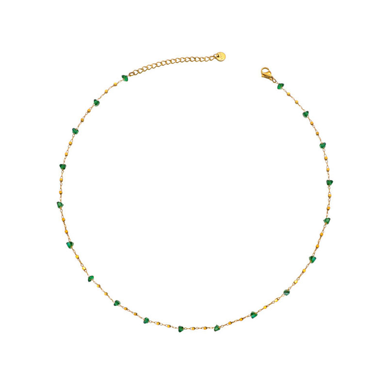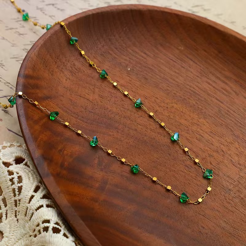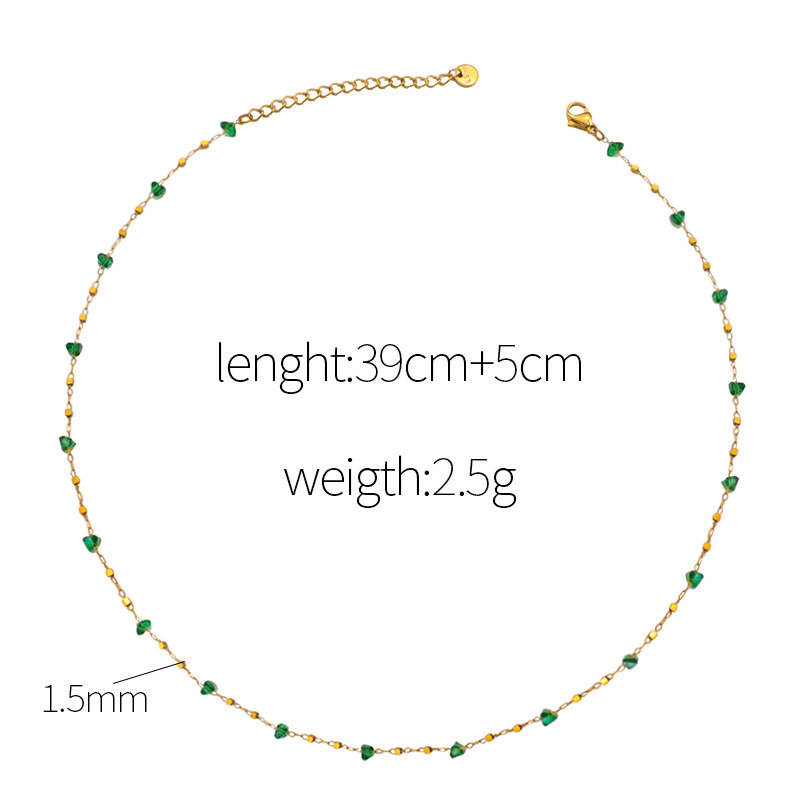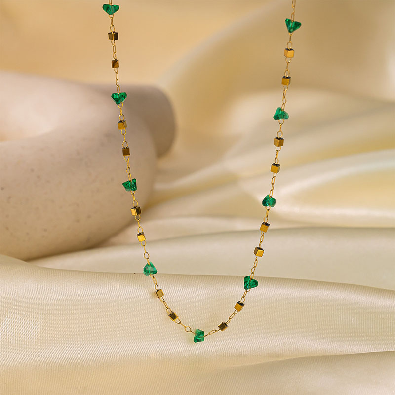 Stainless Steel Geometric Square Charm with Green Crystal Necklace Choker for Women Trend Collar Jewelry Gift Party Wedding