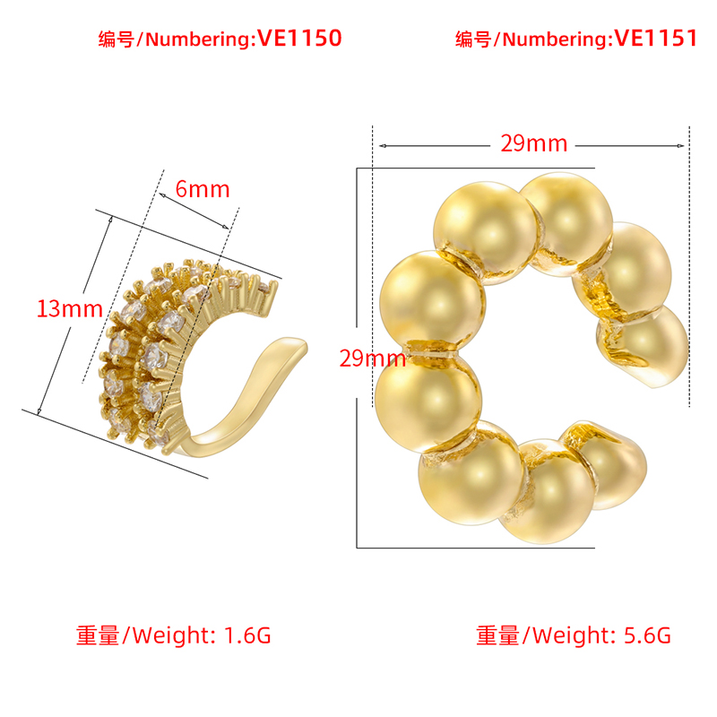 Beads shape ear cuffs adjustble Brass Cubic zirconia ear clips No Piercings Fake Cartilage Earrings